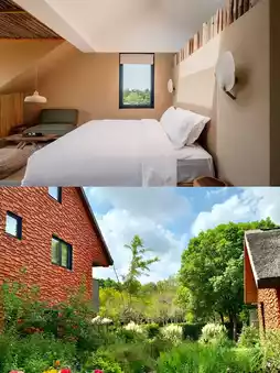 The homestay has nine rooms in total, and I recommend the Huanglu room type! It faces the pool and garden directly, with complete room facilities perfectly blending with nature, giving a great vibe. The room even has a private courtyard, so bringing pets won’t disturb other guests~