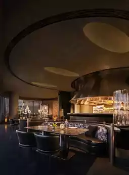 The restaurant is a flowing feast. Booths with slanted beam structures line up along the floor-to-ceiling windows, outside which rush the river and a dazzling skyline, while inside is a dreamlike theater of light and shadow. The green gradient decor shifts between light and dark, reminiscent of the flickering neon in old Shanghai ballrooms. Eastern warmth and refined Shanghai style raise their glasses together in celebration at this moment.