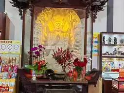 Additionally, the temple houses three beautiful golden Buddha statues and a lovely garden surrounded by large trees, providing visitors a sense of calm away from the city's hustle and bustle.