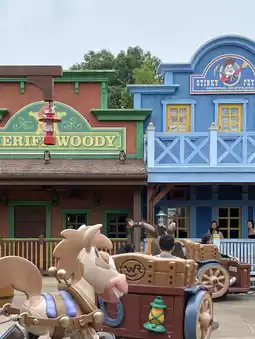 The Toy Story Land zone is very large, with lots of photo spots. It’s decorated in a cowboy theme and filled with various characters throughout the area. Because this zone is so popular, it’s always crowded.