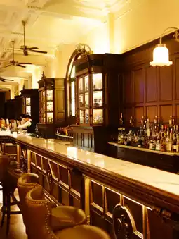 On Sunday night, the Long Bar on the first floor of the historic Waldorf Astoria building exudes its own charm amidst the subtle music. Once home to the longest bar in the Far East, it used to be a gathering spot for the elites of various foreign firms. Now, a DJ sets the mood in the evening, and there are instruments like piano and cello on-site—occasional live performances likely still take place.