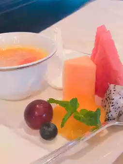 🍉 The meal ended on a sweet note with a colorful fruit platter featuring watermelon, and more — a nice variety where you get a taste of everything.