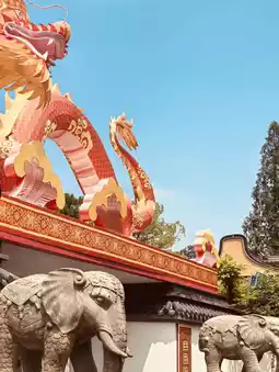 Longhua Temple (龙华寺), located at 2853 Longhua Road, Xuhui District, Shanghai, is an incredibly significant and majestic Buddhist sanctuary, holding the title of Shanghai's oldest and largest temple. Dating back to 242 AD (though most current buildings are Song and Qing Dynasty reconstructions), it offers a profound journey into Chinese Buddhist history and architecture. The temple complex is grand, featuring a series of halls along a central axis, including the Maitreya Hall, Hall of Heavenly Kings, and the impressive Mahavira Hall with its stunning golden statues. The iconic seven-story Longhua Pagoda, standing at 40 meters, is a prominent landmark, its bronze bells creating a pleasant sound in the wind. The "evening bells from the Longhua Temple" are even hailed as one of the eight great attractions of Shanghai. The intricate sculptures and decorations throughout the temple are truly impressive, showcasing remarkable artistic detail.