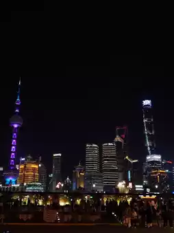 On the other: the glowing skyscrapers of Pudong lighting up the night like a sci-fi movie set.