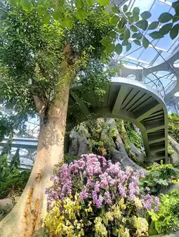 Step into the Cloud Forest at Shanghai Greenhouse Gardens, an indoor forest cloaked in mist and lush greenery. Towering walls of ferns, orchids, and mosses drip with life, while an elevated walkway leads you past waterfalls and into rich fog. The air feels humid and cool, with every step revealing hidden nooks and plant surprises. It's like trekking through a vertical forest under a glass dome, refreshing, serene, and wildly beautiful.