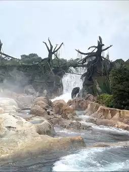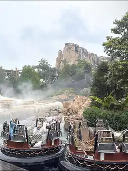 This unique ride features riders riding a circular boat, similar to a whitewater rafting ride. The route follows a rapid river, passing waterfalls and rock formations. The whirlpools, in particular, are incredibly realistic and breathtaking. It's both fun, exciting, and thrilling.