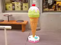 💖 After playing, we stopped for dessert. I can't remember the name of the shop. I ordered a cute bunny-shaped waffle served with blueberry soft serve and icing sugar.