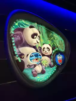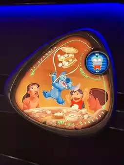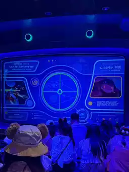 Step into the Space Chat with Stitch attraction and you’ll feel like you’ve entered a high-tech galactic laboratory. The experience begins as you’re guided into the control room where scientists are “tracking” Stitch’s movements across the galaxy. Suddenly, you get the chance to interact with Stitch in real time – he talks, jokes, and reacts to your answers, making every encounter unique.