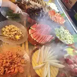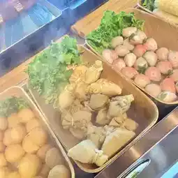 🦐🦞🦑 The restaurant offers a buffet with various prices to choose from. They have beef, pork, and seafood that are incredibly fresh and all-you-can-eat. At the counter, there's a vegetable section with a wide selection of meatballs and a dipping sauce counter for you to make your own.