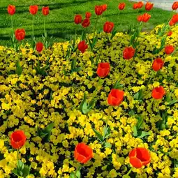 The riverside promenade is lined with colorful tulips, creating a truly romantic atmosphere.