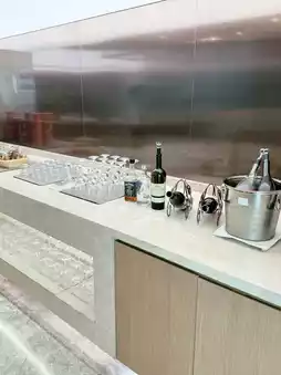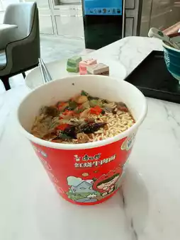 To get there, take the escalator downstairs. There's a small train connecting the terminals. Look for the sign for Terminal S2. If you're unsure, ask the staff. They're very friendly. It only takes a short ride to Terminal S2. After getting off the train, take the elevator to the 4th floor and look for the VIP lounge sign. Follow the signs. If you have a JCB card, you get free access to this lounge. They serve hot noodles, which are delicious. They also have fried dumplings, steamed buns, various drinks, snacks, and instant noodles. It's quite good. Don't forget to leave enough time for your return trip to Terminal 2! 😆