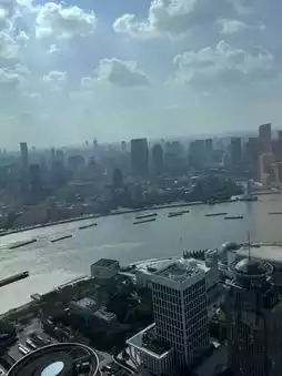 Upon entering, I was captivated by the view outside. Below us lay the winding Huangpu River, shimmering silver in the afternoon sun. In the distance, the skyscrapers of Lujiazui stood like giant building blocks reaching into the clouds.