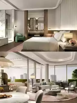 √ Bedroom floor-to-ceiling windows face the Lujiazui skyline trio