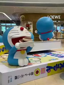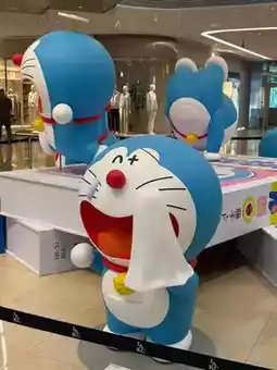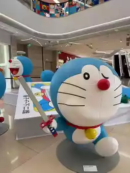 The "100% DORAEMON & FRIENDS" exhibition was held in Shanghai at the Jing'an Kerry Center (静安嘉里中心 JAKC). The exhibition featured a 12-meter-tall inflatable Doraemon sculpture, along with Doraemon and friends in various poses, a giant manga panel, and works created by Fujiko F. Fujio, the creator of Doraemon.