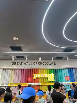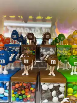 This M&M's flagship store is located on Nanjing Road Pedestrian Street, spanning two floors. As soon as you enter, you're captivated by the vibrant array of M&M's figures and merchandise, including bright slippers and T-shirts, cool mugs, and adorable M&M's dispensers.