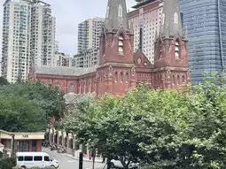 ② The artistic Jing'an and Xujiahui districts: Jing'an Temple, Wukang Building, Xujiahui Academy, and Xujiahui Catholic Church. We took the route to pose for photos as a celebrity. Note that the Catholic Church has a dress code; I wasn't allowed in shorts.