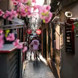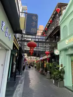 It's a beautiful place, whether in the narrow alleys lined with lanterns, in front of the stone gates of unique shops, or even on the staircases within the old buildings.