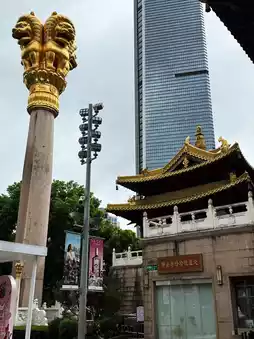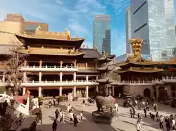 The temple itself includes golden halls, tall pagodas, and impressive Buddha statues, including a large jade Buddha and a bronze bell. Though it sits among modern skyscrapers and malls, the temple offers a quiet, peaceful place for prayer and reflection. Many visitors come to burn incense, make wishes, or enjoy the calm atmosphere and history of this nearly 1,800-year-old landmark.