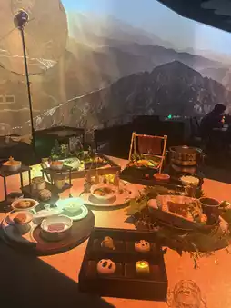 Each chapter of the story pairs with a dish—from eastern delicate bites to western fiery flavors—enhanced by live cultural performances and high-tech interactive table projections. The immersion is unreal!