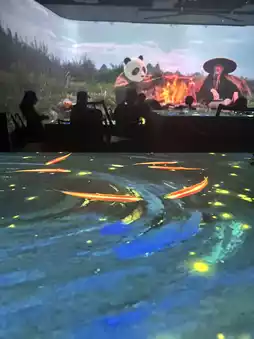 ▫️ Dynamic Projection Dining Tables: The moment you sit down, your table transforms into a living work of art! Panda Chef "Cheng Baobao" 🐼 guides you through a culinary journey across China’s seven geographic regions, featuring iconic dishes like Beijing duck, mapo tofu, and sour fish soup.