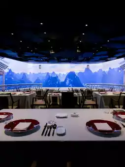 🌌 Next-Level Immersive Vibe: The panoramic projections transport you everywhere from a misty Jiangnan landscape to the rushing Yellow River and a starry cosmos. The tabletops are interactive—you can practice calligraphy or catch virtual fish! It's a seamless blend of tech and tradition. Plus, with live Sichuan Opera, water sleeve dances, and Shaolin Kung Fu happening right beside your table, the entire room was filled with gasps of awe!