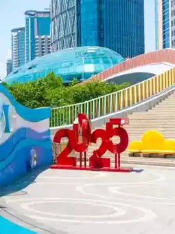 Located in the North Bund Greenland Park area near Discovery Bay, there's a vibrant rainbow bridge and cute cloud chair. It's a must-see for any photoshoot.