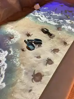 There are several themed zones, such as Time Travel, Dinosaur World, the Stars, Mirrored Rooms/Multidimensional Spaces, and a "Fossil Digging" corner.