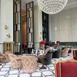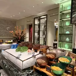 Breakfast offered a wide variety of options, though it was quite crowded. Using a 100 RMB coupon, we had lunch at The Drawing Room, where the ham and melon, as well as the salmon tartare, were absolutely delicious! The cola was priced at 68 RMB, which was a bit steep, but overall, the stay was incredibly satisfying 👍