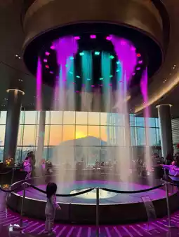 Therefore, we recommend the rooms on the [above-ground] floor. Not only can you enjoy views of the waterfall, but there’s also a light show at night. However, the price is higher.