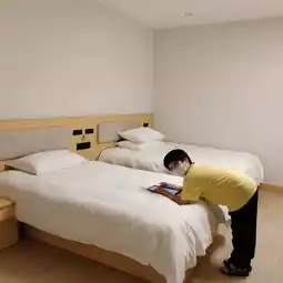 As a budget hotel, the rooms are not big, but clean and tidy with no odors. There are disposable bath towels, toothbrushes, toiletries, and grooming is no hassle. The washing machine and dryer are perfect for self-guided travel. The room has a sofa and a dining table, which is very convenient to order takeaway to the hotel.