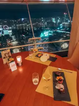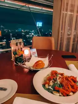 📍 Tip: Book a table by the window if possible for the best photos and view experience. Don’t rush – the full rotation takes about an hour, giving you plenty of time to savor both your meal and the scenery 🌆❤️.