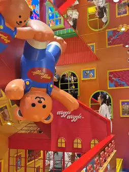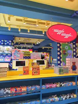 Wiggle Wiggle Shanghai opened in 2024 with a concept that ties in with its South Korean branch, telling the story of a UFO that crashed from Seoul to Shanghai. The shop has four floors, each decorated uniquely. For example, the first floor is the lobby, the second floor is a garage, the third floor is a playground, and the fourth floor is an attic and restroom. All are designed to be interesting photo spots.