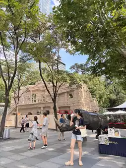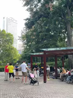 Jing'an Park is a popular spot for Shanghainese residents for activities such as morning dances, live music, and friendly street cats. There is also a small playground for children and a cafe in front of the park.