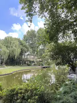 Jing'an Park is spacious and shady, with mature trees such as ginkgo and sycamore trees lining the central walkway. There are lawns and ponds with blooming lotuses in summer. There are also Chinese wooden pavilions and stone landscaping, creating a sense of tranquility and naturalness.