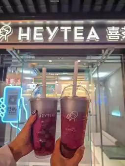I tried the grape flavor at 'Hey Tea,' a famous fruit tea place. It was made with high-sugar red grapes, and it was absolutely delicious! (🍇 Highly recommended! Grape flavor!)