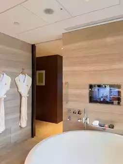 The room I stayed in was called the Mandarin River View, a corner room offering views of both the Oriental Pearl Tower and the Huangpu River. There is one such room per floor, and the view is quite stunning. The bathtub is spacious enough for two people, giving a vibe similar to staying at a riverside hotel along the Chao Phraya River in Thailand.