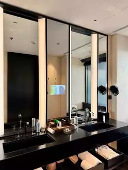 Bvlgari Shanghai first opened in 2018, just a year after the opening of Bvlgari Beijing. Everything, including the interior design of the rooms and the hotel, is quite similar, almost identical. However, Shanghai stands out with its stunning city views, especially the iconic skyline of Shanghai, visible from every highlight building in the city.