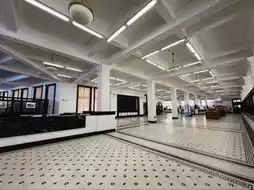 "The First Hall in the Far East": This former hall is vast and still retains its original counters and cast iron railings. Looking down, the black and white mosaic floor tiles are incredibly retro!