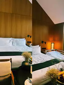 The warm cup of tea offered by the staff upon check-in soothed my mind before my body. Stepping into my room, warm lighting and the subtle scent of wood filled the air, and beyond the large window in front of the bed, a small garden unfolded like a sumi-e painting. Just sitting quietly and gazing at it was healing.