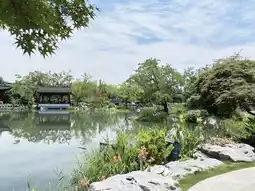 A classical Jiangnan garden hidden within a modern park, every step is filled with poetic beauty.
