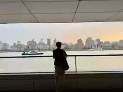 It's a popular spot for taking photos of the evening light in Shanghai.