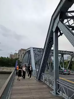 The all-steel bridge, 106.7 meters long with two 52.16-meter spans, serves as a vital thoroughfare connecting Huangpu and Hongkou districts in downtown Shanghai, with separate lanes for pedestrians and vehicles. During the day, the bridge offers stunning views of both sides of the Suzhou Creek. Strolling along, you'll admire the traditional alleyways on one side and the modern buildings on the other, immersing yourself in the interplay of time and space in Shanghai.