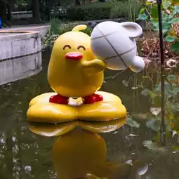 If you're wandering through Fuxing Park in Shanghai, don’t be surprised when you suddenly stumble upon giant yellow duck statues standing proudly among the trees and flowerbeds.