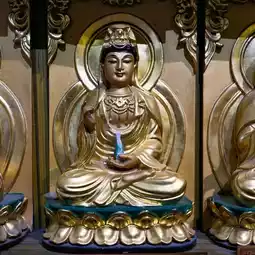 Step inside Qibao Pagoda and prepare to be amazed — each floor reveals a gigantic Buddha statue, towering silently in golden or stone form. As you climb higher, the light gets dimmer, the air cooler, and the statues even more majestic. It feels like ascending through layers of devotion, with every level offering a different guardian watching over the temple grounds.