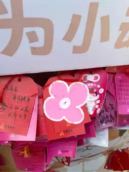 Outside, there's an activity where you can write wishes and tie them to cute things.