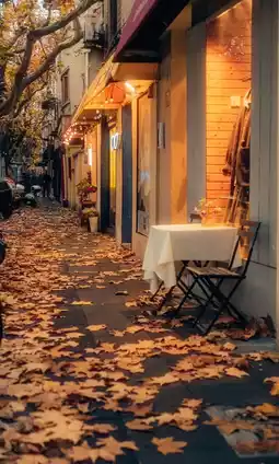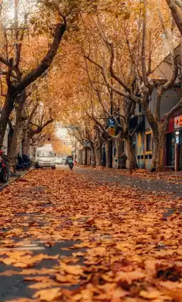A slow-paced autumn park in the city, with beautiful red leaves and plane trees, and elderly choirs singing everywhere 🎤
