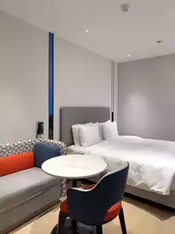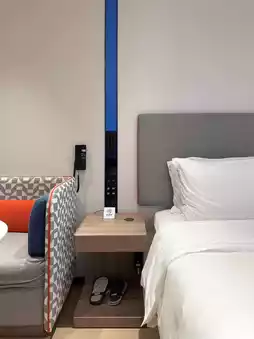 The hotel here feels very modern. The rooms are brand new. The Standard Room is well-designed, featuring a 55-inch TV (Android devices can cast to the screen, but not Apple). The lighting system is touch-controlled, and there are USB Type A, Type C ports, and even wireless charging. The curtains are automatic.