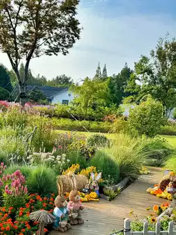 🎀 Inside the garden, you can find sunflowers, pink muhly grass, red spider lilies, reeds, and more