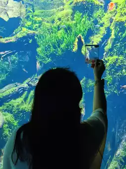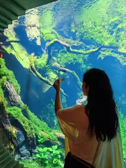 I headed straight to the Underwater Forest, where I met a cute girl 📸 in front of the popular big fish tank holding a card while taking photos. I peeked over and 😍 it was a beautiful transparent card for check-ins!