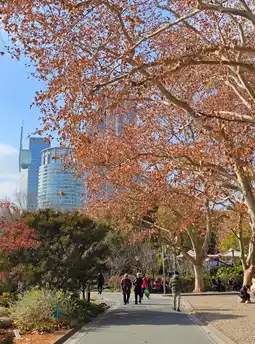 Spring brings a display of crabapple blossoms, autumn shows off golden ginkgo leaves